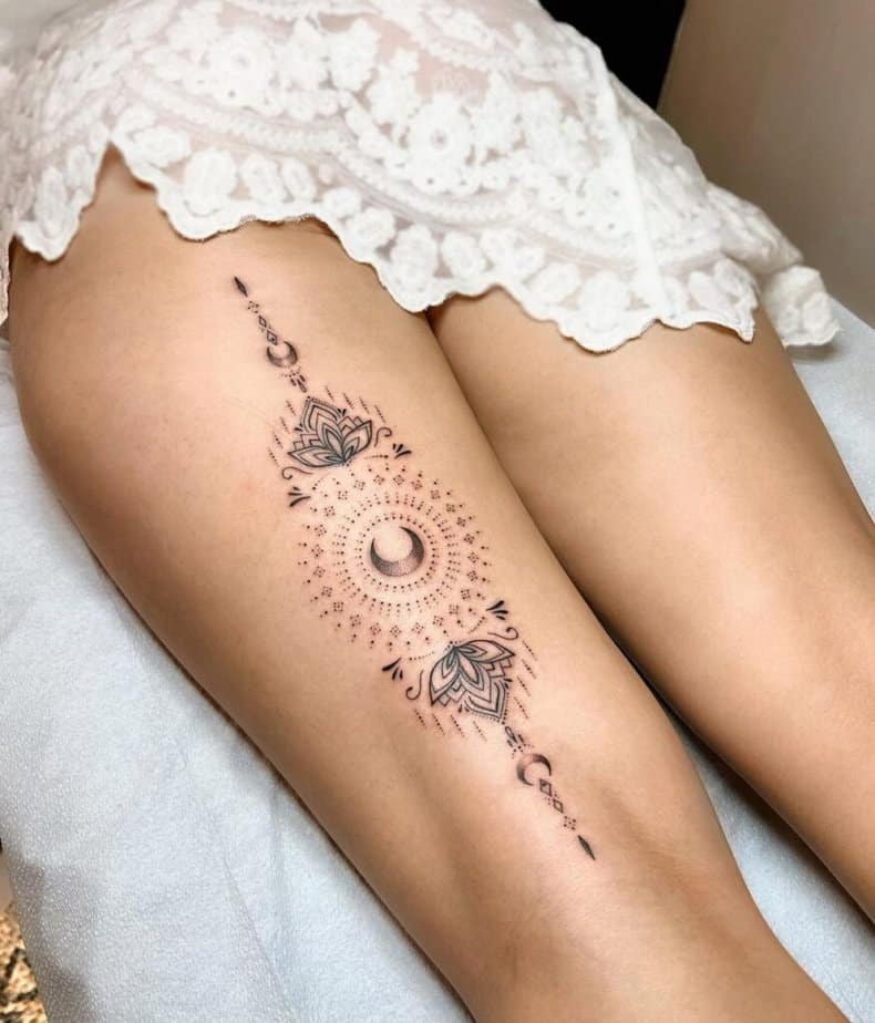 If you’re after drama, thighs are where it’s at. A tight ornamental design there can be bold and mysterious — think layered motifs and flowing patterns that move with your body. It’s a lovely place to experiment and build something that feels like a private statement.