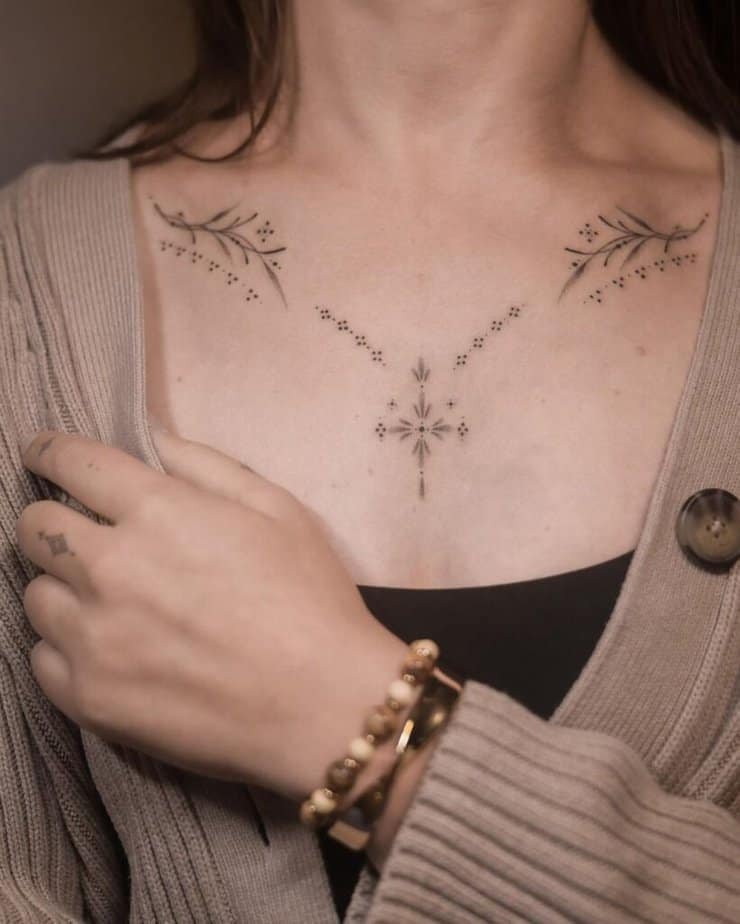 Collarbones are such a flattering spot for ornaments — they accentuate the natural lines and look confident without being aggressive. A little decorative pattern there can feel effortlessly elegant.