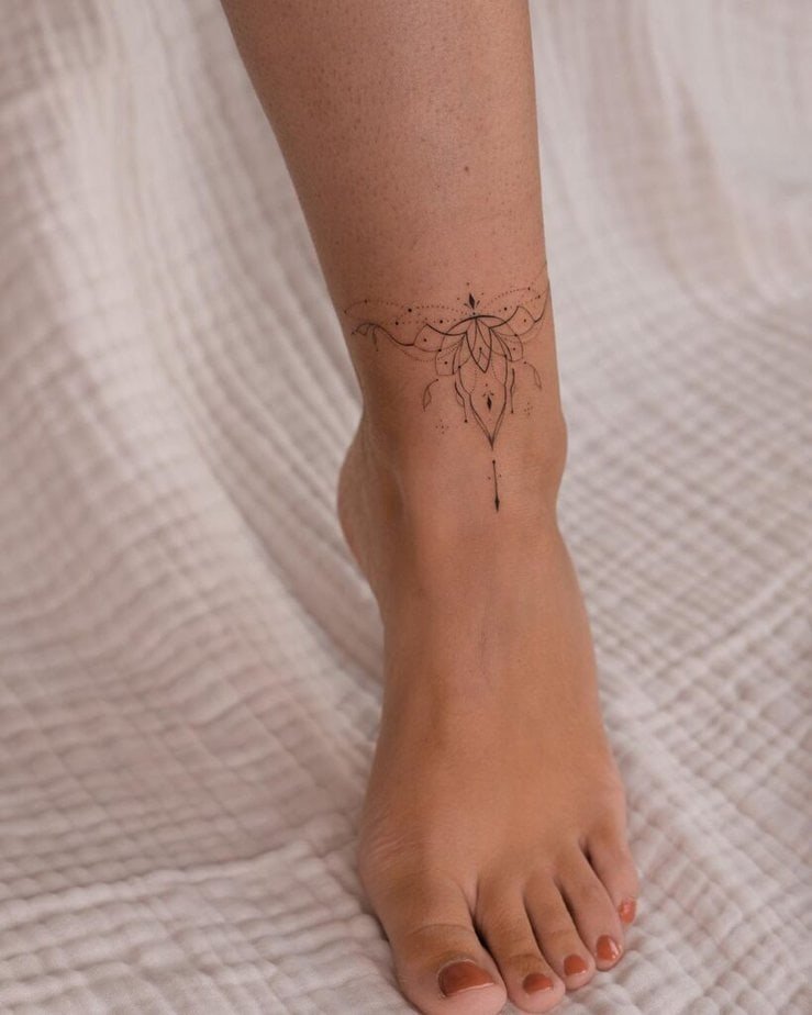 Ankle tattoos are like permanent anklets — low-key, flirty, and surprisingly chic. They’re great when you want something decorative but not front-and-center, and they pair beautifully with sandals or cropped pants.