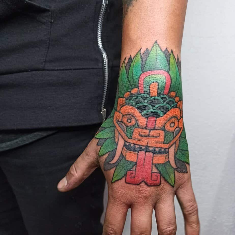 A hand tattoo is unapologetic. This Quetzalcoatl hand design screams strength, power, and resilience. If you want a constant visual cue to pursue wisdom and take control of your life, this one’s a mic-drop.