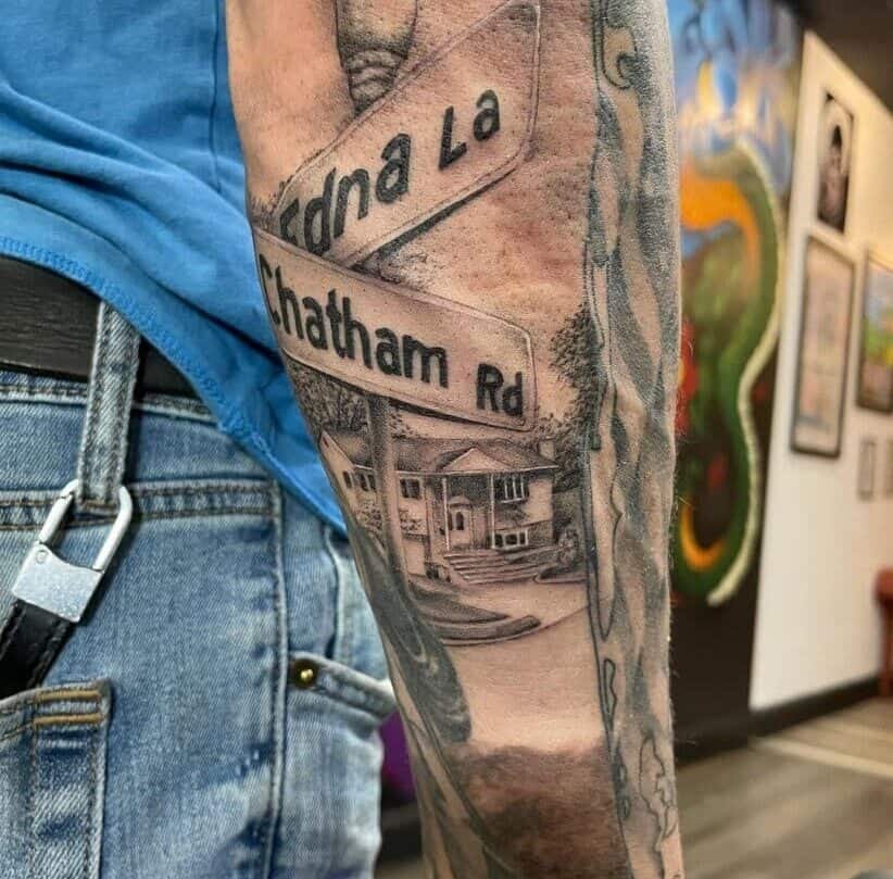 Whether you’re thinking about honoring your hometown or daydreaming about tattooing the street you grew up on, I’m right here with you. Street tattoos can feel a little daunting — they’re detailed and personal — but they’re also one of the sweetest ways to carry where you came from with you. To me, street signs and names usually mean loyalty to the people who raised you, the routes you took to get where you are, and a quiet respect for that little patch of earth that made you. But honestly? You can make it mean whatever you want. I pulled together some of my favorite street-tattoo ideas to spark your inspiration — might be exactly what you need, or at least give you a mood to work from.