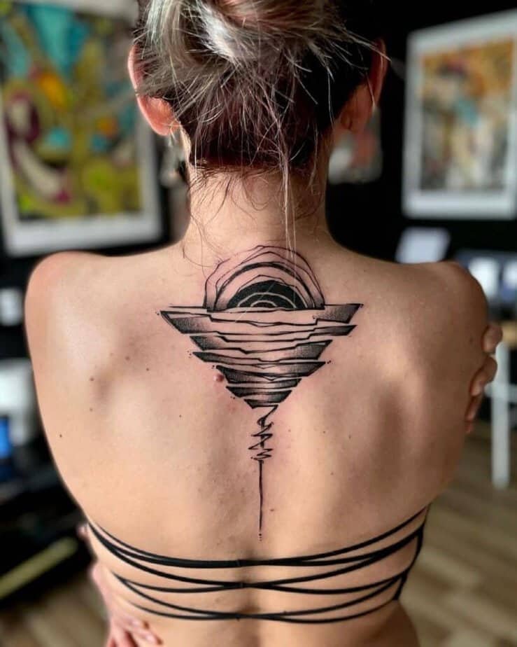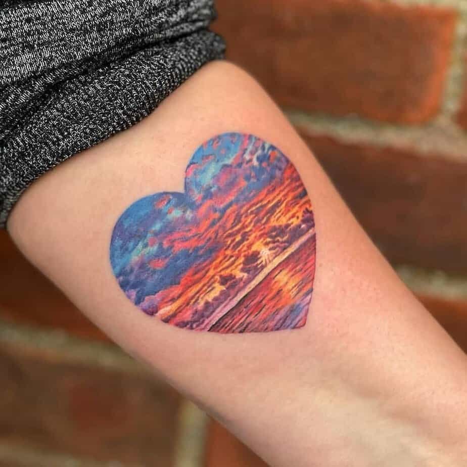 If you like tattoos that make people pause and smile when they finally figure them out, an abstract sunset is a cool, unexpected pick. It’s memorable and artsy.