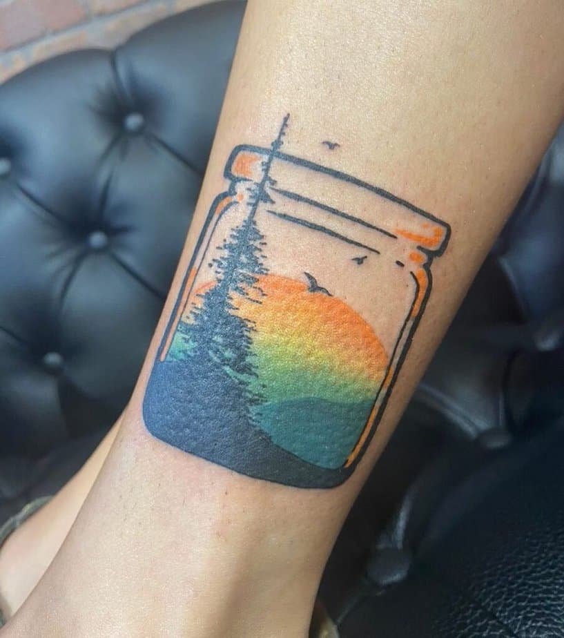 Could you carry your favorite sunset in a jar? This design says yes. It’s whimsical and totally customizable — pick the hues that mean the most to you.