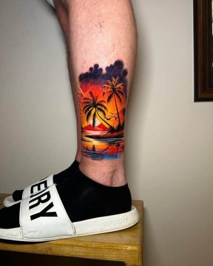 Some sunsets are tied to people — the family trip that mattered, the night you felt fully seen. A tattoo like this can hold that memory for you, quietly and beautifully.