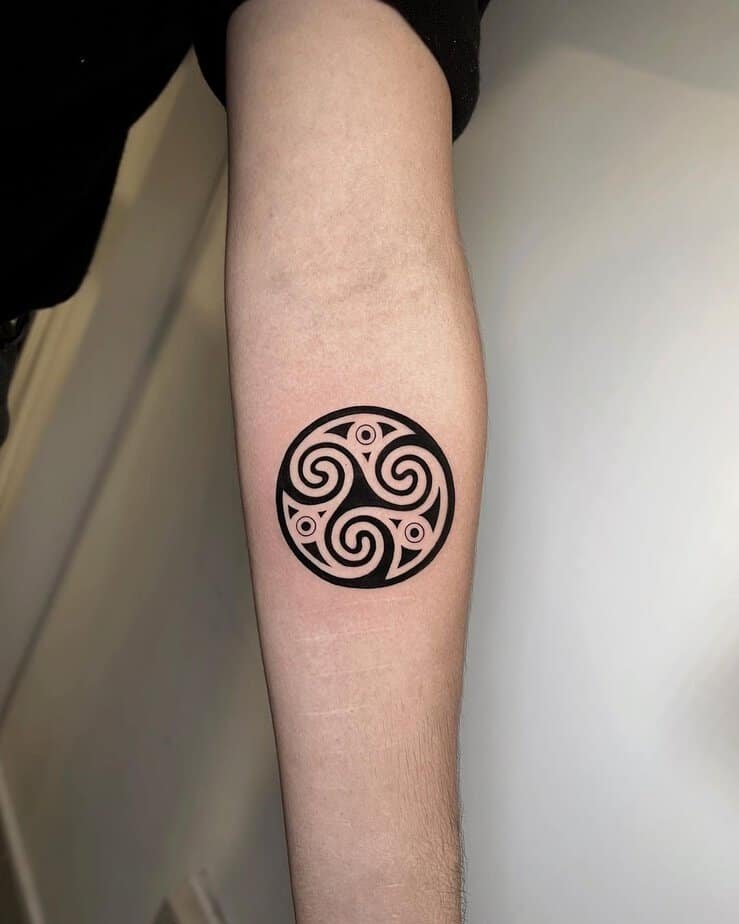 These sweet little matching tats are perfect if you and a bestie or partner want something symbolic but low-key. The triskelion here becomes a tiny pact: infinity, connection, and a shared path. They feel personal without being flashy — a quiet way to say “we’re in this together.”