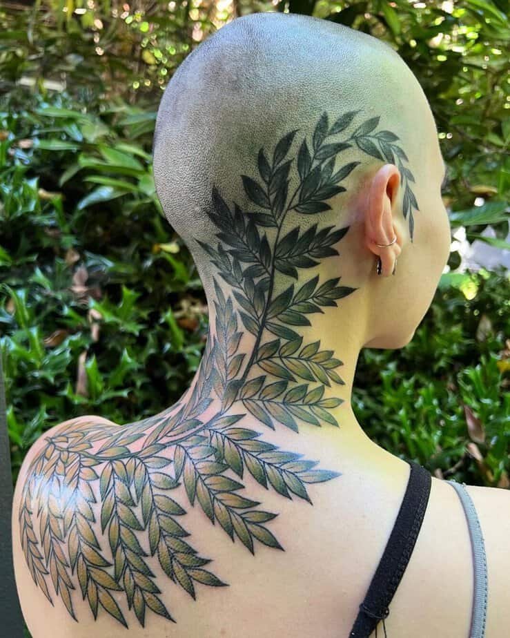 If you want to get creative, vines can host all kinds of symbols. Snakes entwined with vines bring protection and power to the piece, which adds a whole other layer of meaning. Mandalas paired with vines create a balanced, spiritual vibe — some artists even use blackout work around the mandala to make everything feel bold and centered. There are also designs where the vine flows from the shoulder across the back and up to the base of the skull, with colored leaves and thicker lines that map perfectly to the body’s curves. These unusual options show how flexible vine tattoos can be if you want to make one truly your own.