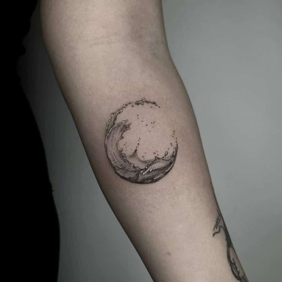 I love this playful idea — waves formed into a lunar curve. It’s poetic: the moon controls tides, tides shape waves, and suddenly your tattoo feels mythic and personal.