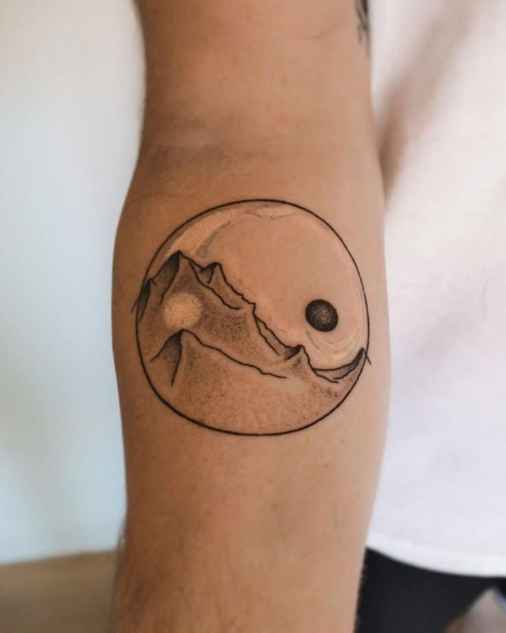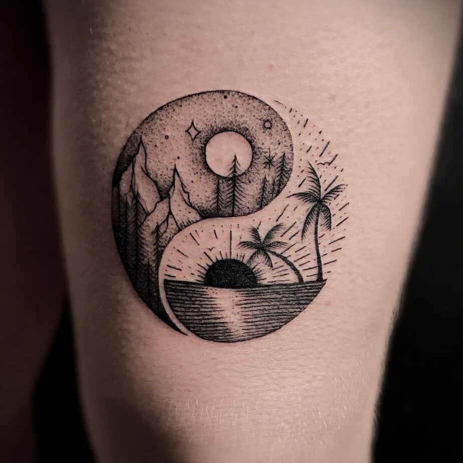 This one tucks a tiny sunset-scene into the yin-yang circle and suddenly it’s poetic. Whether you chase sunrises or linger at dusk, this design captures that quiet threshold between rest and promise. It feels like the best kind of hush — full of hope.