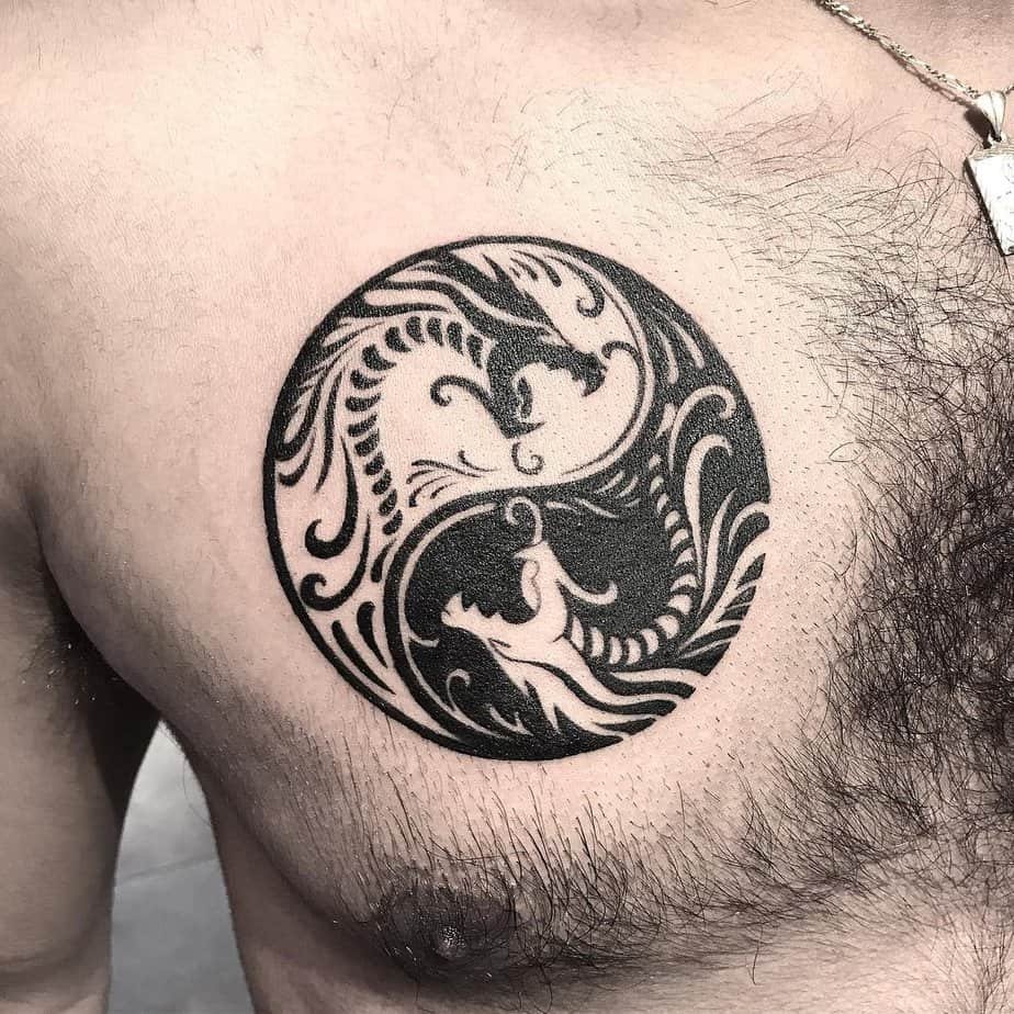 Sometimes simplicity slaps the hardest. A solid black-and-white yin-yang with clean lines is a statement without fuss. It reads as clear, strong, and true — a classic for good reason.