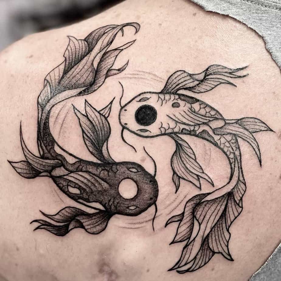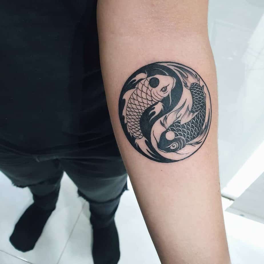 Round and round they go — these koi forming a seamless circle feel meditative. This design screams cyclical life: endings become beginnings, ebbing into flow. If you love the idea of return and renewal, this one’s both calming and symbolic.