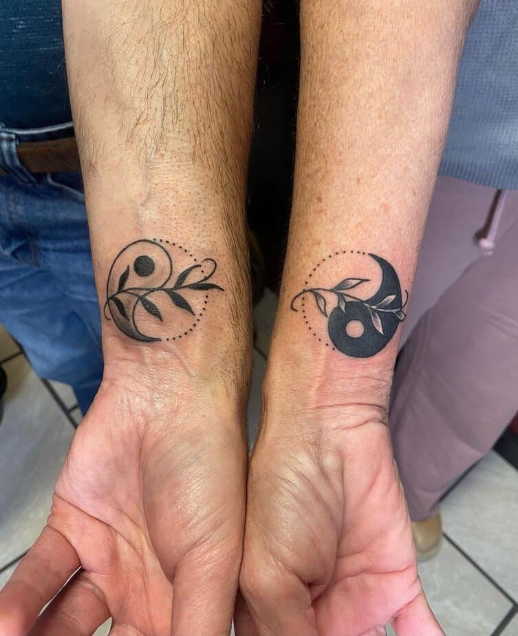 Nature lovers, this one’s basically a leafy hug. Two intertwined leaves forming a yin-yang nod to growth, seasons changing, and renewal. It feels alive — like balance that breathes. Perfect if you want something organic that says your equilibrium comes from tending to life, like a garden.